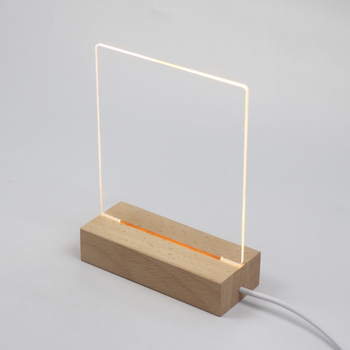 रसेबल मेमो नाइट लाइट खाली ऐक्रेलिक एलईडी बोर्ड लकड़ी के लिए लकड़ी के आधार के साथ लाइट ऐक्रेलिक